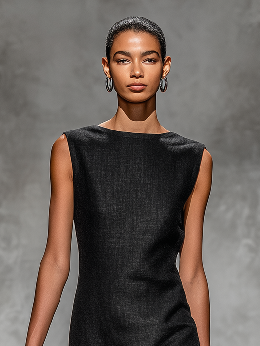 VESTIDO MINI NEGRO SIN MANGAS LINO