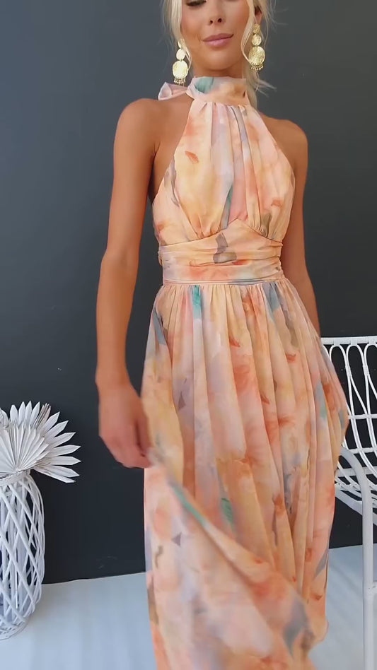 VESTIDO MAXI CUELLO HALTER NARANJA