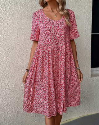 Das Amalia -Kleid ist die ideale Wahl für alle, die eine feminine und elegante Silhouette suchen. Der florale Print verleiht ihm einen klassischen Touch, während die Midi-Länge und der weiche Schnitt die Figur vorteilhaft betonen. Mit Rundhalsausschnitt, kurzen Ärmeln und leichtem Stoff ist es perfekt für den stilvollen und bequemen Übergang vom Tag zum Abend.
